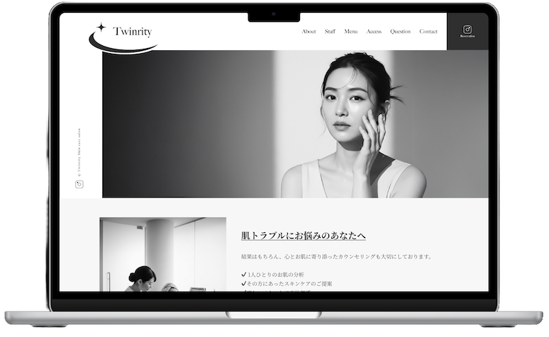 - スキンケアサロン「Twinrity」のWebサイトを制作。施術内容紹介ではなく、「この人に相談したい」と思われる信頼形成をゴールに設計。