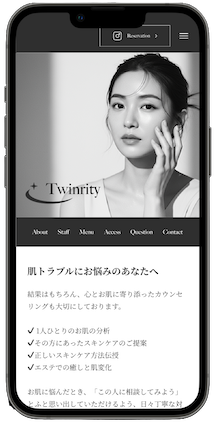 - スキンケアサロン「Twinrity」のWebサイトを制作。施術内容紹介ではなく、「この人に相談したい」と思われる信頼形成をゴールに設計。